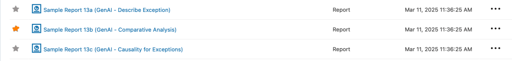 Let’s explore a new report for the new use case : Comparative Analysis Sample Report 13b (GenAI-Comparative Analysis).