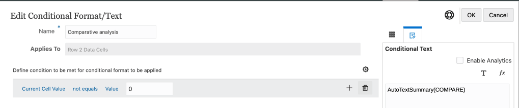 Then the conditional AutoTextSummary() use COMPARE , as a compare parameter that is used for the Comparative analysis.