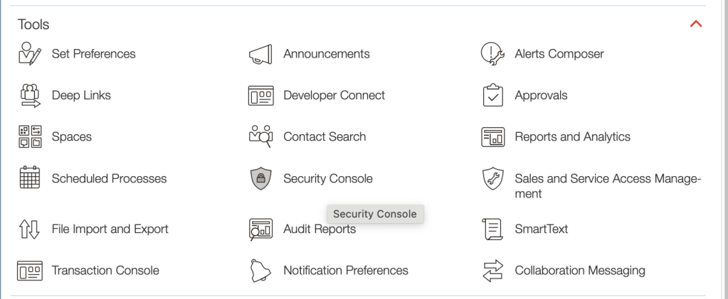 - Access to Tools > Security Console