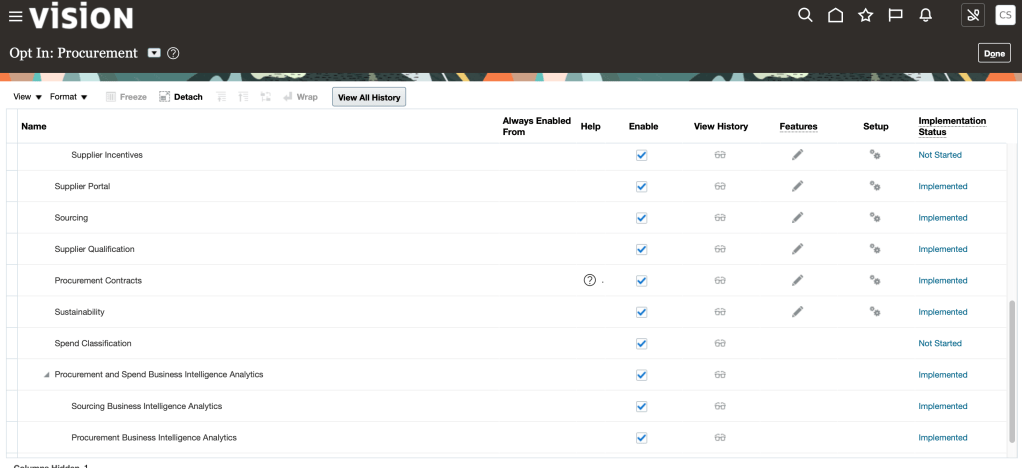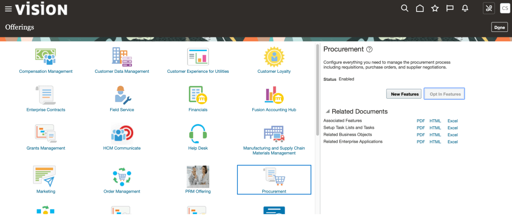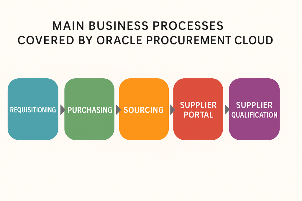 Here is the main business processes (high level design) for Oracle Procurement Cloud app: