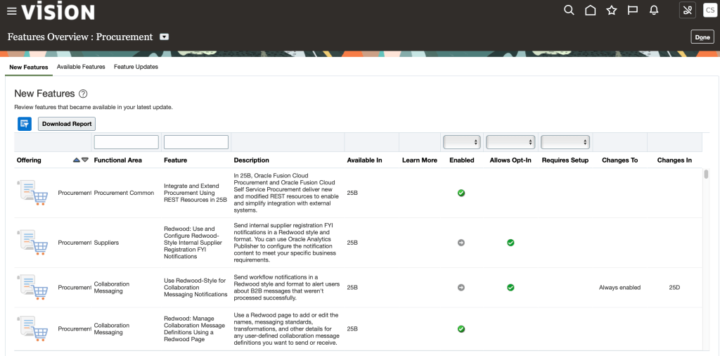 - Step .4. Now go to: Actions > Offerings > click ‘Opt in Features’